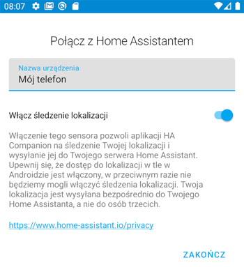 Ustawiam jeszcze nazwę mojego telefonu pod jaką będzie widziany w Home Assistant.