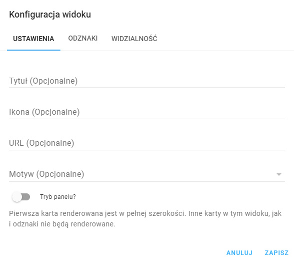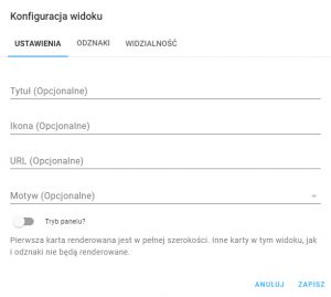 Na widoku mogę dodać dowolną dostępną kartę jakie oferuje Home Assistant i dodatki do niego.
