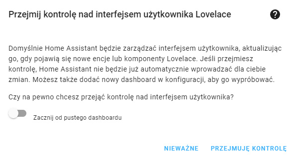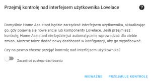Jako, że pierwszy raz to robię, to pojawia się okno z informacją o przejęciu kontroli nad interfejsem.