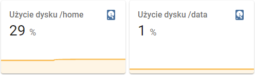 Użyję znów programu cat do odczytu oraz dodatkowo programu sed do wskazania linii w pliku, a także awk do wskazania miejsca w linii, gdzie jest interesująca nie wartość zajętości partycji w procentach, która będzie przekazywana do encji disk_use_percent_home i w drugim przypadku do disk_use_percent_data.