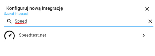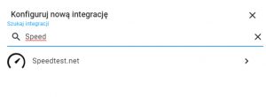 Po krótkiej chwili dostaje komunikat o powodzeniu instalacji i mam dostępną nową integrację z trzema encjami, które przechowują stan parametrów łącza: download, upload i ping.