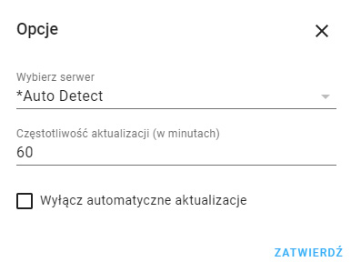 Dodatkowo wybierając OPCJE mogę ustawić serwer i częstotliwość sprawdzania prędkości łącza. Zostawiam tam jednak domyślne wartości.