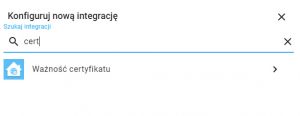 Szukam integracji o nazwie Ważność certyfikatu i ją wybieram.