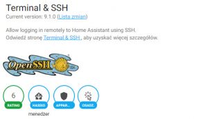 Na panelu Home Assistant z lewego dolnego menu wybieram Supervisor, a dalej u góry Sklep z dodatkami. Odszukuję dodatek Terminal & SSH, otwieram go i klikam ZAINSTALUJ.